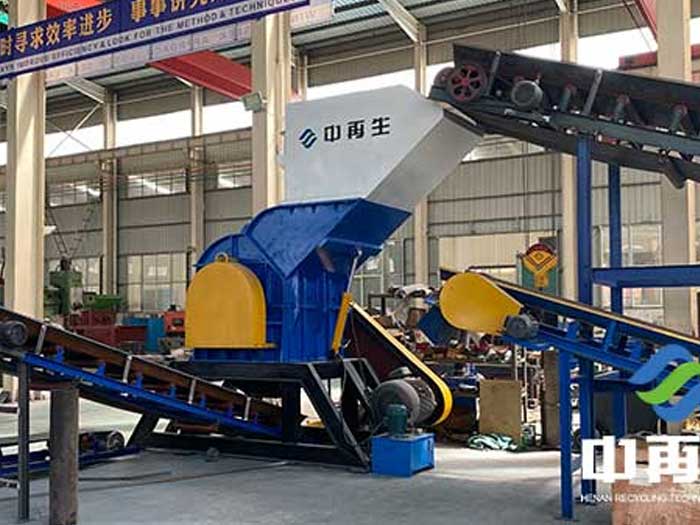 在工作流程上,中再生科技生產(chǎn)的廢鋼破碎機通過上料輸送裝置將廢舊金屬送到進料口,通過壓輥和粗碎軸的破碎加工將廢舊金屬進行初級破碎,經(jīng)過初級破碎后的廢金屬料進入設備主機腔,在高速大扭矩電機的驅動下,主機轉子上的錘頭輪流擊打進入主機腔內(nèi)的金屬料通過襯板與錘頭之間的空間,待破碎金屬在破碎腔內(nèi)可得到有效的細碎,將待破碎金屬撕裂成合乎規(guī)格的破碎物后,從篩網(wǎng)中流下來。破碎物料經(jīng)過空氣回旋分揀系統(tǒng),可以將金屬上殘留的油漆、鐵銹、非金屬上雜質進行分離,在設備底部卸出的物料再通過輸送設備運送到集料點,在此過程中物料中含有的非磁性物料在磁選機的作用下被分選卸出生產(chǎn)線落到非磁性物料料堆。另外整個系統(tǒng)裝有除塵裝置,將生產(chǎn)過程中產(chǎn)生的破塵污染危害降低。該設備主要有產(chǎn)量高、能耗低、效率高、出料細碎均勻等優(yōu)點。并且在使用該設備時,噪聲低、無污染,使用簡單、維護方便。